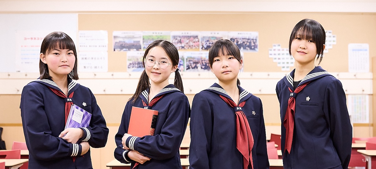生徒の生の声を通して、学校の特色や魅力を紹介するシリーズ。今回は中学1年生4人が日々の学校生活や将来の夢などを語ってくれた。