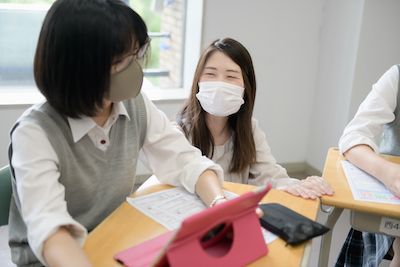 Iさん 本を読むのは好きです。書くのは苦手ですが、前より書けるようになりました。この学校では、宿泊行事の事前学習としてiPadを使ったプレゼンを行うなど、プレゼンの機会が多くあります。たくさん読んだり書いたりすることで、そのようなときに発表する力もついてきました。作文などをたくさん書くことで、語彙も増えて文章力が磨かれるので、コミュニケーション力も高まるのだと思います。