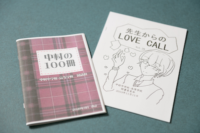 読書指導としては、毎朝のホームルームで10分間「朝読書」を行い、静寂の中で文章に触れる時間を作っている。様々なジャンルの本に触れてほしいという思いから、国語科が推薦する図書100冊を紹介した冊子『中村の100冊』を全校生徒に配布。教員の名前入りの紹介文とともに各学年に適した本が掲載されており、本を手に取るきっかけとして活用されている。『先生からのLOVE CALL』は、理事長や講師も含めた全教員が薦める本を紹介。生徒たちはそれらを参考に本を読み、1冊読んだ後には「読書ノート」に感想を書いて提出する。「読書ノート」は、国語科の教員が漢字や文章表現のチェックをして返却。教員からのコメントが、生徒たちの励みになっていると板倉先生は語る。